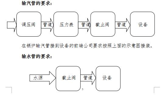 為了有效控制輸入的蒸汽和冷卻水,達(dá)到設(shè)備適宜的條件,請(qǐng)按公司的提議接裝輸汽管和輸水管。
