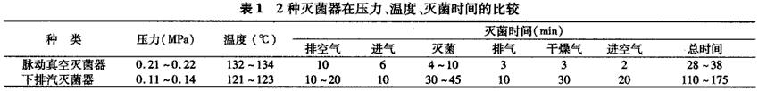 表1 兩種滅菌器在壓力、溫度、滅菌時間的對比[2]