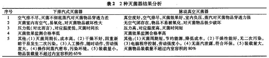 綜上所述,對兩種滅菌器進行對比得出脈動真空滅菌器,真空度好,內室無空氣死角,利于蒸氣穿透物品。