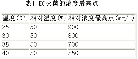 表1 EO滅菌的濃度**高點