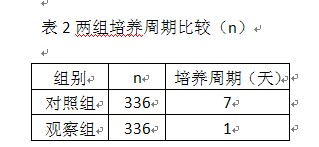 2.2兩組培養(yǎng)周期比較見(jiàn)表2